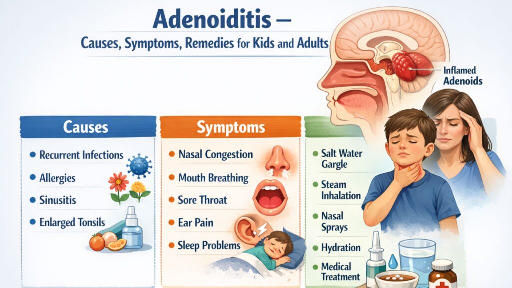 Note: Adults rarely have enlarged adenoids, but chronic infections or residual adenoid tissue can cause symptoms.